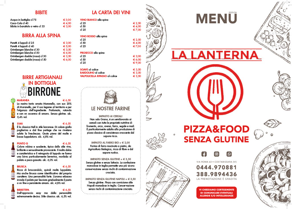 Menu La Lanterna Costabissara Vicenza